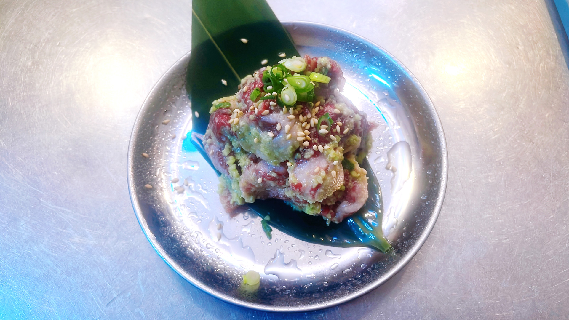 石垣牛のカルビをわさびで和えた一品。焼くことでお肉の甘みがさらに増し、わさびの爽やかな香りがアクセントになって、一度食べたらクセになる味わい。お酒やご飯との相性も抜群の、当店こだわりメニューです。